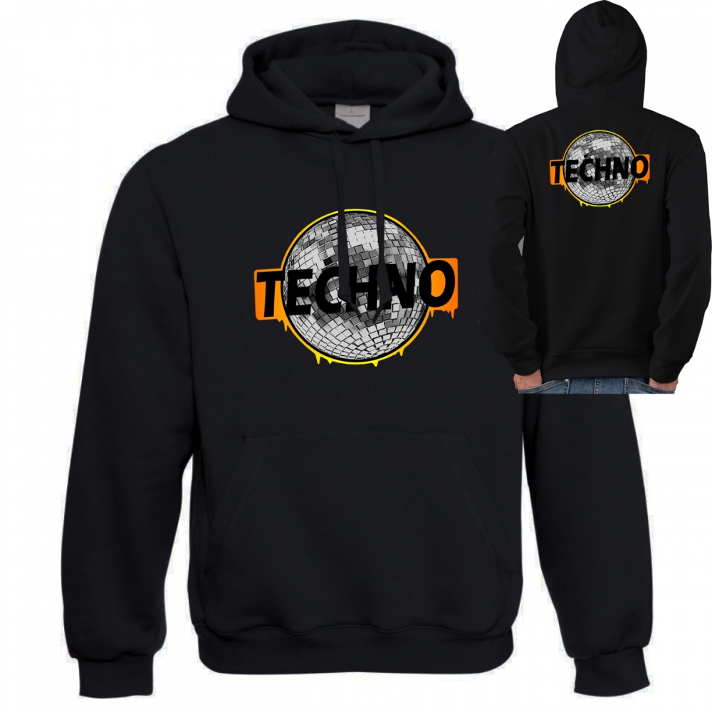 kikkbeatz® Herren Hoodie "Techno Discokugel" / (Größe) 2XL / (Platzierung) Front & Rücken